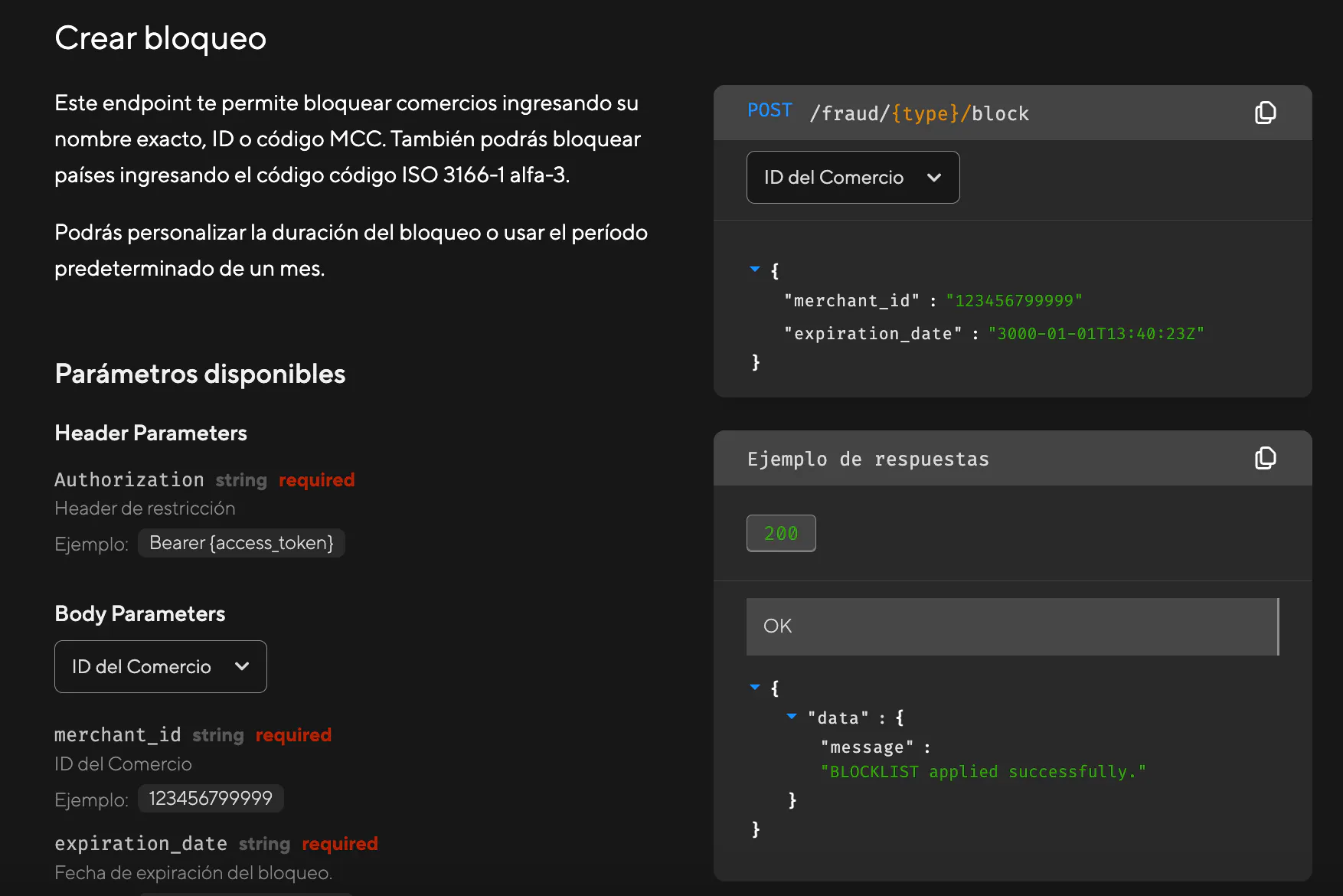 Esto significa que desde ahora podrás definir bloqueos directamente desde nuestras APIs, sin necesidad de levantar un ticket o esperar la creación y el despliegue de reglas. ¿El resultado? Respuestas más ágiles, personalizadas y 100% adaptadas a tu modelo de negocio.