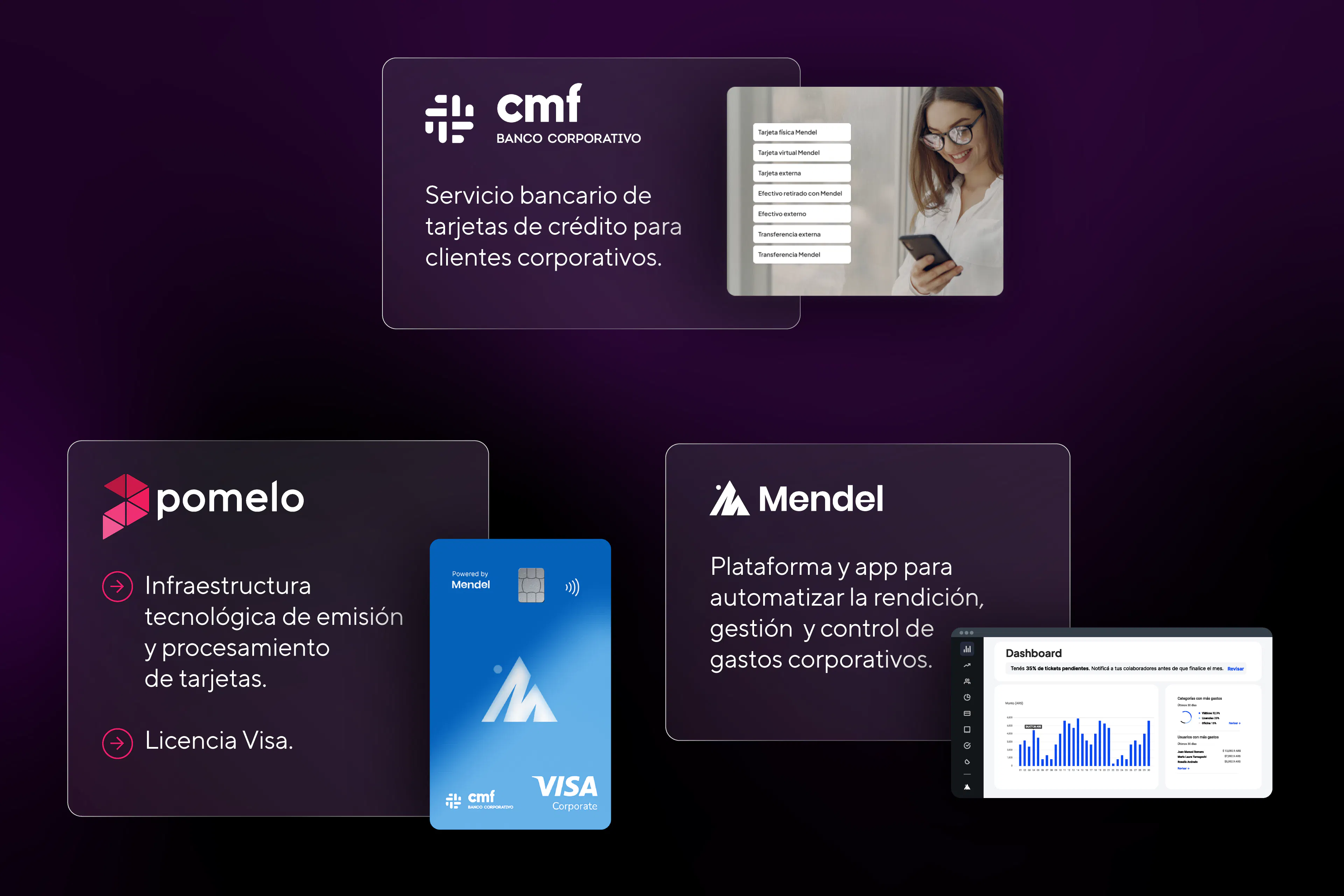 Junto a nuestra infraestructura de primer nivel para la emisión y procesamiento de tarjetas y la solución de gestión de gastos corporativos ofrecida por Mendel, CMF llevó al siguiente nivel su solución de créditos, alcanzando la vanguardia en soluciones corporativas bancarias.