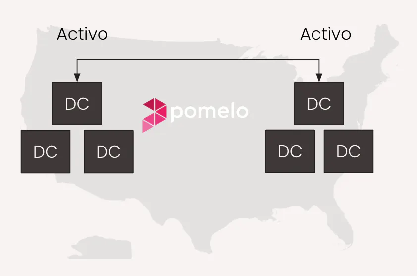 Por lo que si miramos, por ejemplo a Pomelo, funciona en un esquema activo-activo, en 2 regiones de AWS utilizando 3 zonas de disponibilidad por región. Es decir, estamos corriendo al menos en 6 DC al mismo tiempo. Gracias a esto, mejoramos los tiempos de recuperación prácticamente a cero y aumentando nuestros niveles de disponibilidad hacia casi los 99,999%.