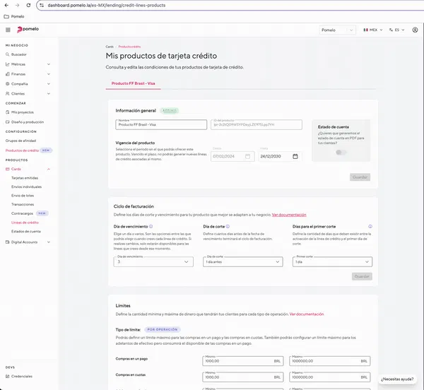 Nueva sección en nuestro Dashboard para gestionar productos de crédito