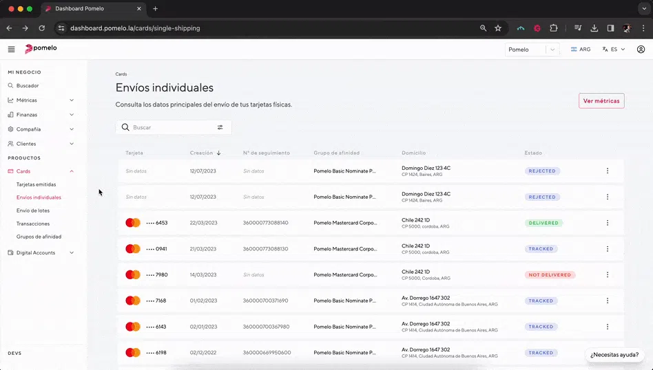 En el tercer update de nuestro envío de tarjetas, el foco estuvo puesto en incorporar al Dashboard el detalle histórico de envíos por cada tarjeta. Esta actualización ya estaba disponible vía endpoint y ahora nuestros clientes pueden consultar todos los estados de envío y el recorrido que fue haciendo el paquete, paso a paso, a través de nuestra herramienta de gestión. ¡Consulta aquíaquí todos los detalles!