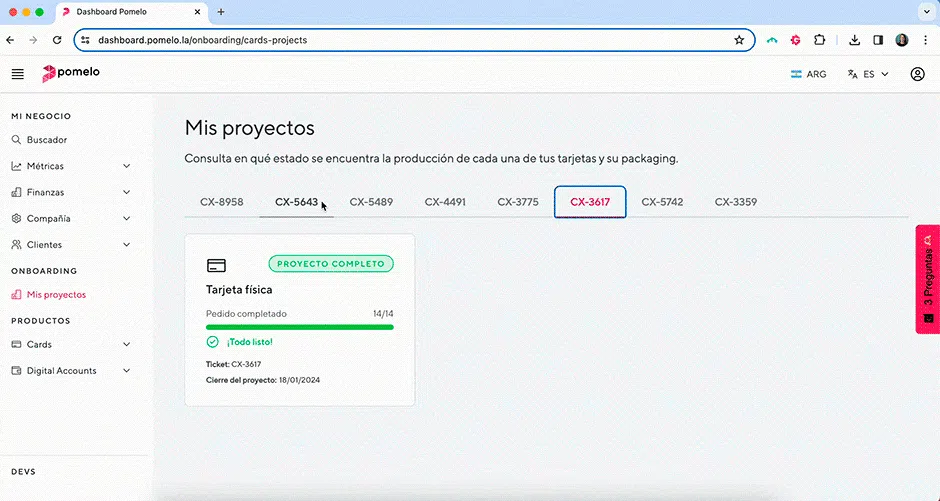 Encuentrala en la nueva sección de Onboarding: Mis Proyectos.