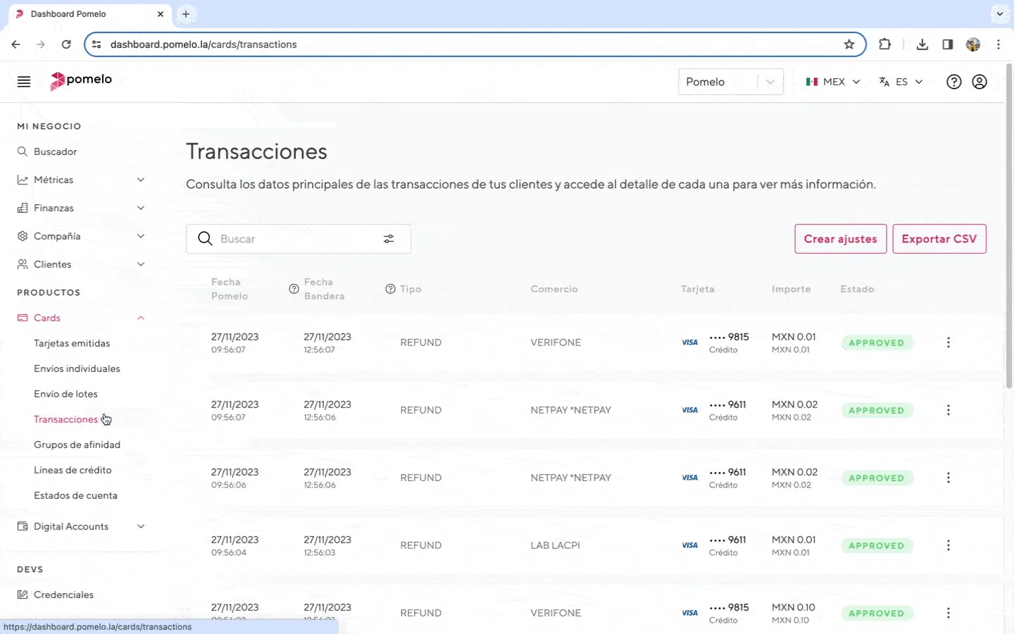Mejoramos la información y la navegación sobre transacciones y usuarios en el Dashboard: ahora, todo el detalle se encuentra unificado y simplificado dentro de la sección Cards. De esta manera,brindamos aún más comodidad para que nuestros clientes de cualquier país tengan amplia visibilidad sobre sus productos.