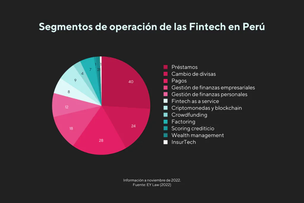 Perú es uno de los países con más oportunidades para el desarrollo de soluciones Fintech, de medios de pago, de criptomonedas y de préstamos en todo Latam. Esto es así, ya que aún hay un gran terreno para explorar y pocas empresas que ofrezcan estos servicios en la actualidad. Según un Estudio de Mercado del sector fintech en el PerúEstudio de Mercado del sector fintech en el Perú realizado por EY, para el 2022 Perú contaba con 154 fintech, lo que significó una leve caída del 10% respecto del año anterior. Y Lending, el segmento especializado en préstamos, está a la cabeza con 40 fintech del total, sin dudas este sector es el más creciente -y uno de los más demandado por los usuarios- en Perú.