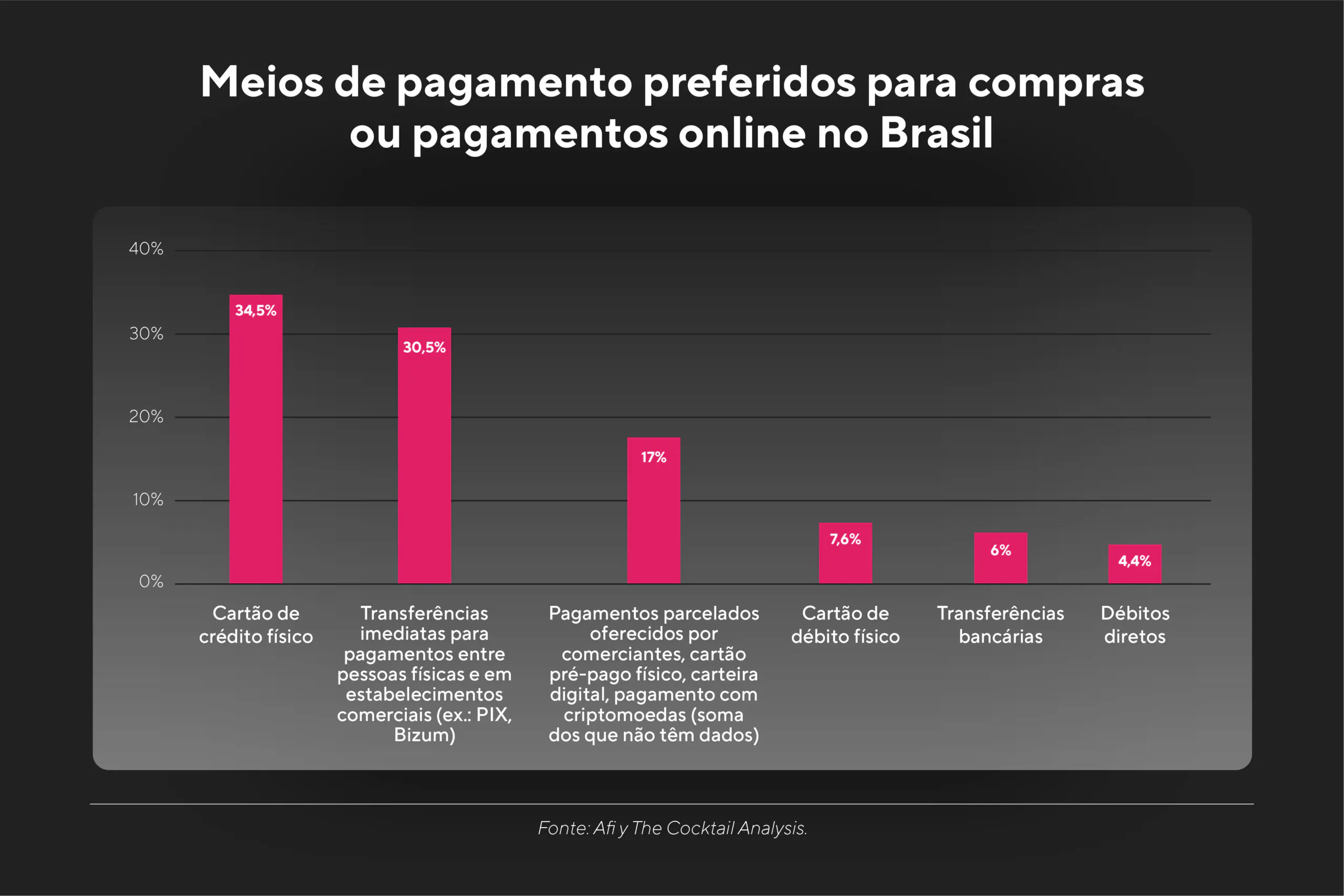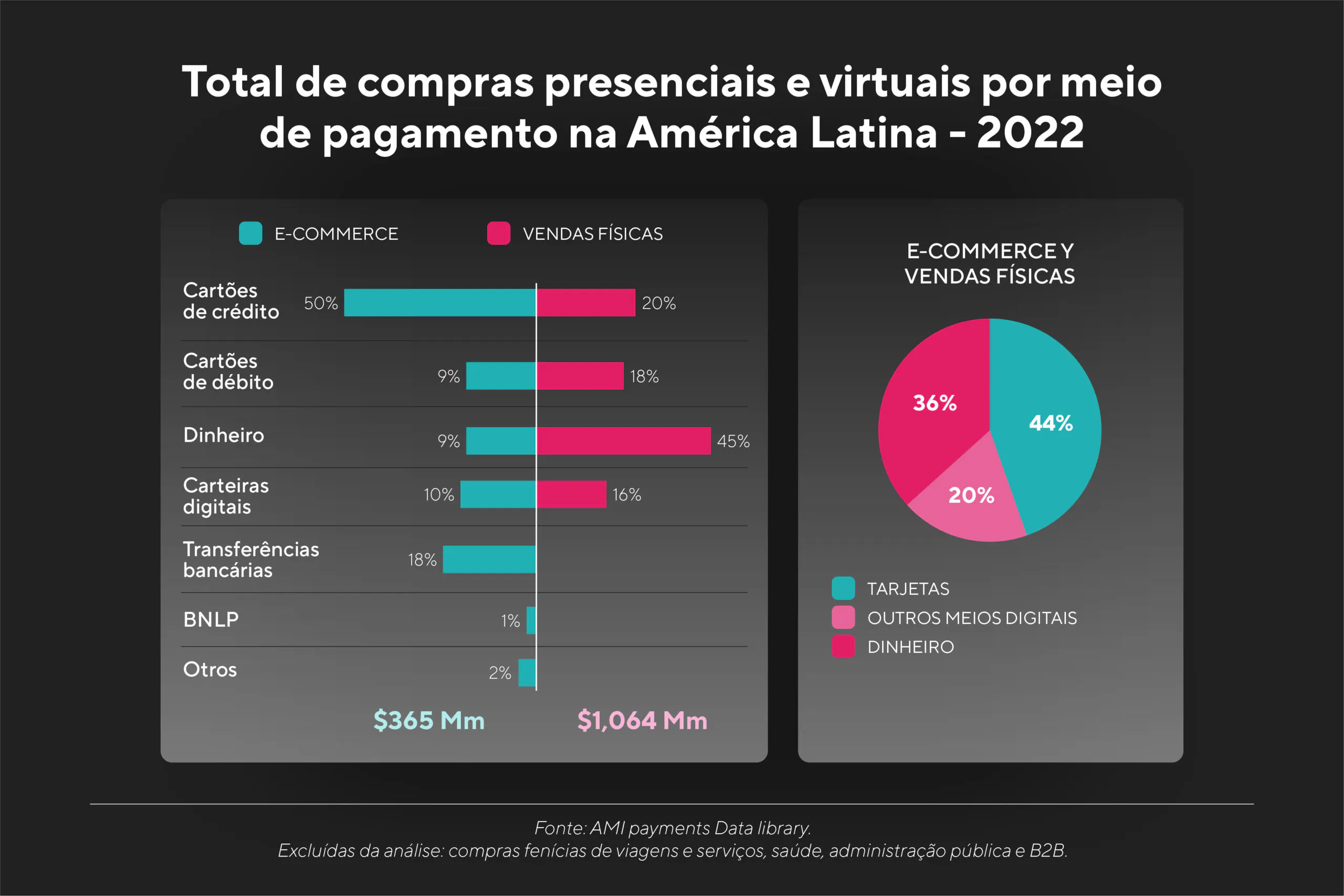 O boom das fintechs alavancado por grandes inovações tecnológicas, aliado à pandemia de COVID-19, que levou as pessoas a adotarem soluções bancárias digitais, resultou num avanço da bancarização no continente. Este fenômeno resultou em uma redução significativa da utilização do dinheiro físico como meio de pagamento preferencial: de acordo com a AMIde acordo com a AMI (Americas Market Intelligence), 44% de todo o universo de pagamentos na América Latina é agora feito com cartões, incluindo o e-commerce e varejo, tornando-o o meio de pagamento mais utilizado. Isto significa que os pagamentos em dinheiro foram ultrapassados, ficando em segundo lugar com 36%.