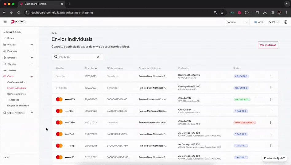 Na terceira atualização de nossa entrega de cartões, o foco foi incorporar detalhes históricos de entrega de cada cartão no Dashboard. Essa atualização já estava disponível via endpoint e agora nossos clientes podem consultar todos os status da remessa e a rota percorrida pelo pacote, passo a passo, por meio de nossa ferramenta de gestão. Confira todos os detalhes aquiaqui!